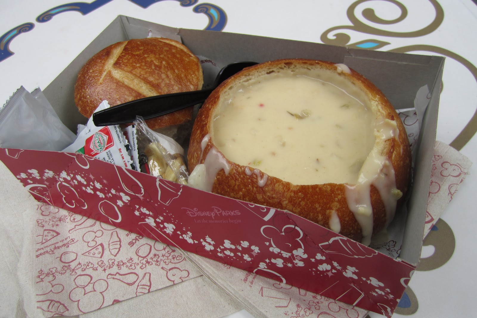 and of course, I can't resist CLAM CHOWDER IN A BREAD BOWL.